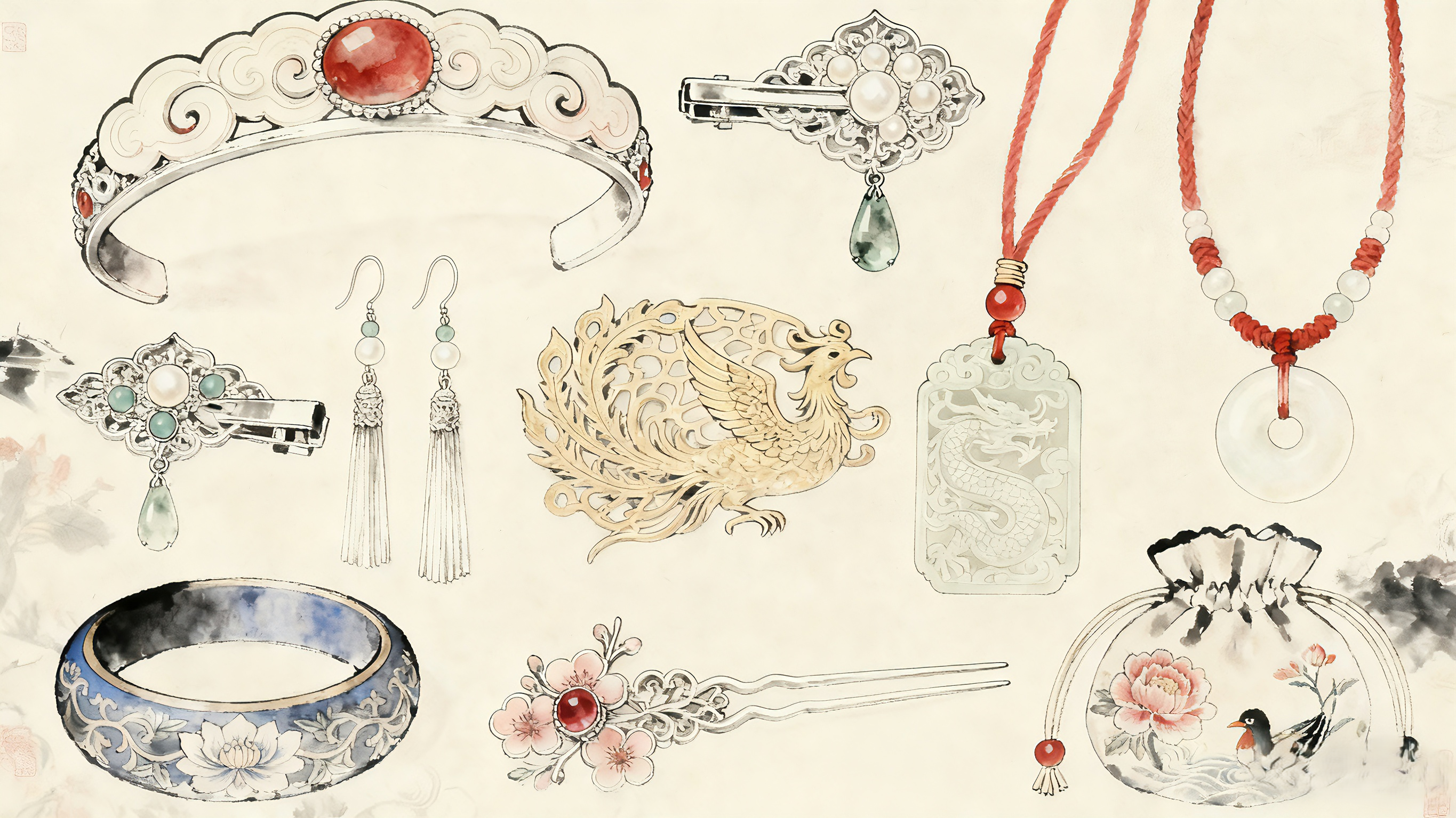 Chinese style, lily of the valley peach blossom bracelet hand-woven thousands of miles of rivers and mountains bracelet transfer beads red rope